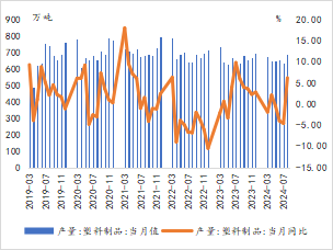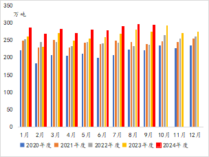 从产量来看,2024年1-9月,PE、PP国内产量分别为2073.38万吨(+4.03万吨)、2547.48万吨(+192.68万吨),同比分别+0.19%、+8.18%。产量取决于产能和开工率,PE上半年开工率处于低位,且无新投产装置,因此产量增幅不大,仅有小幅的增加;PP虽然开工率同比下滑较多,但在产能基数增加较多的基础上,产量增幅较大。