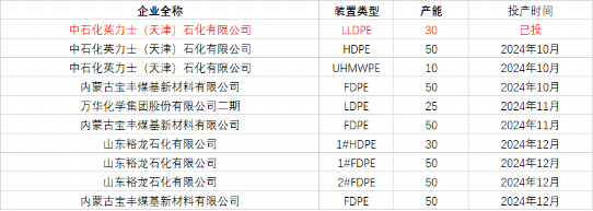 聚烯烃:投产装置临近,供应压力逐渐回归