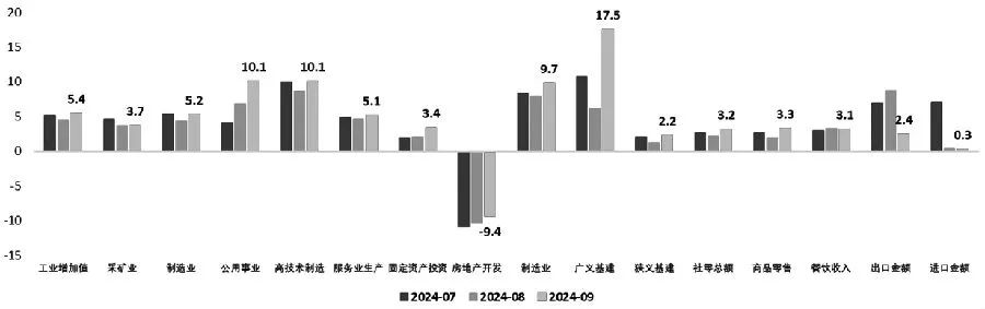 不过,房地产行业对经济的拖累仍在,内需增速绝对值依旧偏低,三季度GDP平减指数录得-0.53%,已连续6个季度负增长。此外,9月外需表现不及预期,货物出口额同比增长2.4%,较上月回落6.3个百分点。虽然存在极端天气、全球航运不畅等偶发因素的影响,但后续来看,随着美国大选的临近,地缘因素对外贸的影响加剧。在此情况下,增量财政政策加快落地巩固基本面回升趋势的必要性仍高。