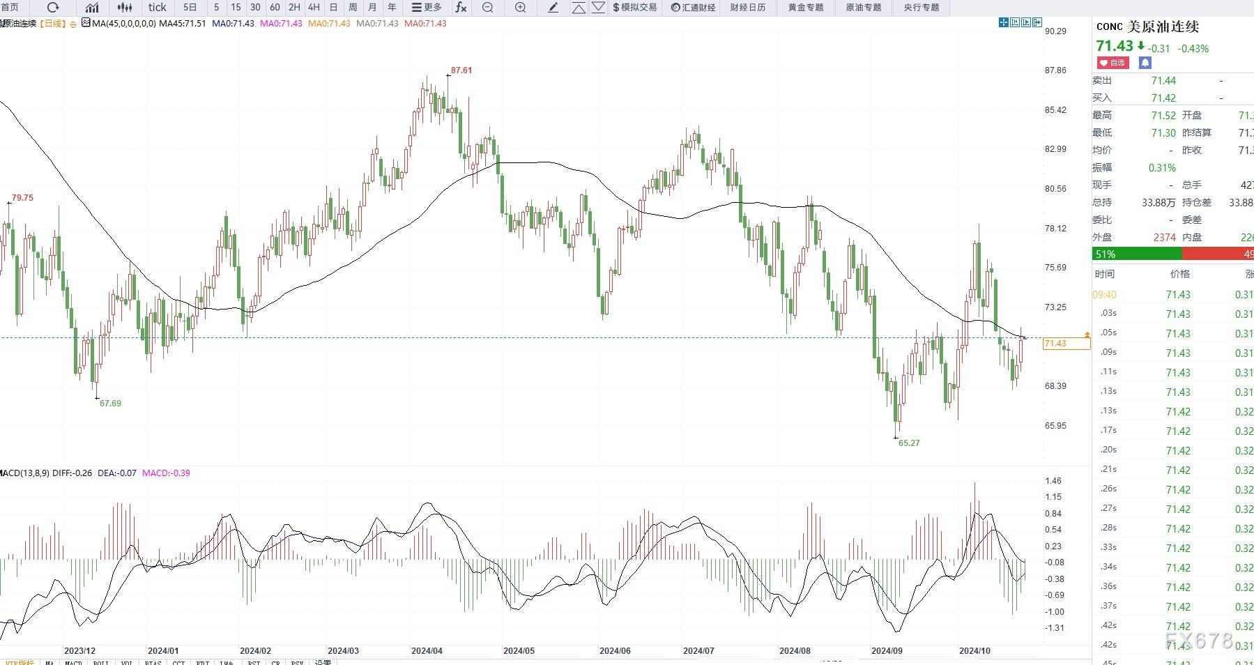 汇通财经APP讯——周三(10月23日),国际原油小幅回落,隔夜大幅反弹,技术层面上进入压力区间,若进一步向上突破则有望重回多头区间,基本面上主要是大宗商品共振走强,市场依然是在美国大选的情绪交易之中,预期通胀有望再起,但原油的需求端依然是限制上涨空间的重要因素,日内重点留意EIA库存数据的变化,是否支撑油价向上突破。