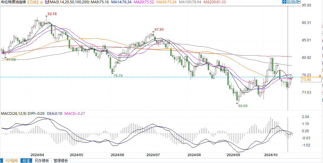 北京时间10月23日11:22,布伦特原油价格报75.86美元/桶