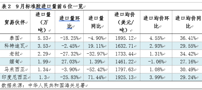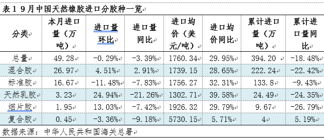 【进口解读】天然橡胶:9月天然橡胶进口环比降0.29%同比降3.39%