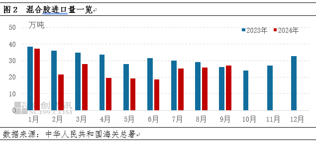 2.19月混合胶进口量环比增长4.51%,同比增长2.91%