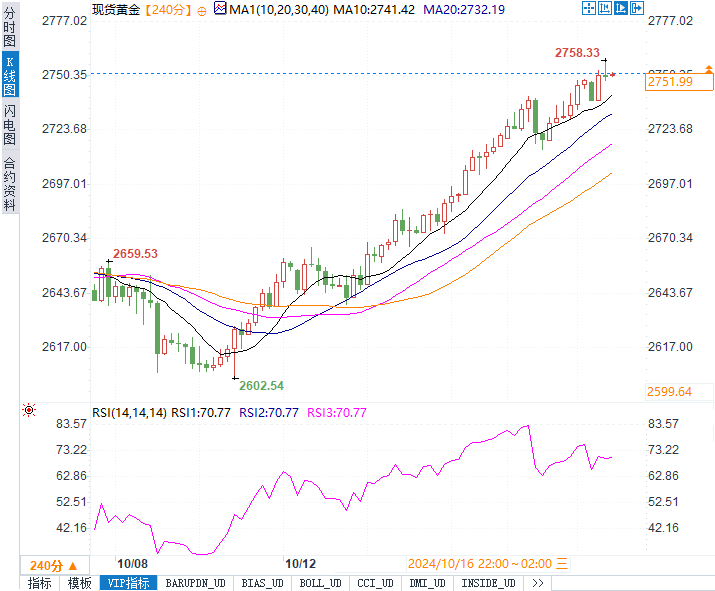 随着中东局势的恶化,以及全球经济前景的不确定性,黄金作为避险资产再度发力,现货金价突破2750.9美元的历史新高。近期一系列利好推动了黄金的强势表现。美国总统大选的激烈选战、全球通胀的压力以及美联储未来政策的走向,给市场带来了高度的不确定性,避险情绪快速升温。