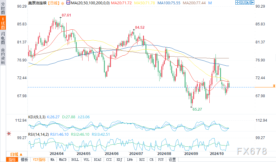 汇通财经APP讯——周三(10月23日)欧洲时段,WTI原油价格回调,扭转了周二的大部分涨幅,盘中守于70美元上方,跌幅约2%。
