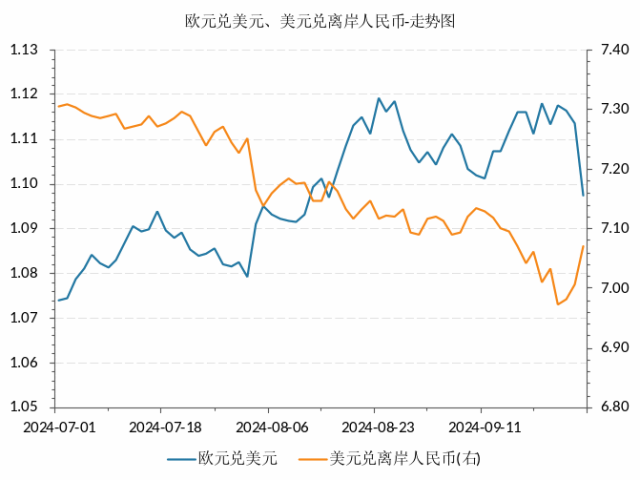 国内方面,9月27日,中国人民银行宣布降准降息,下调金融机构存款准备金率0.5个百分点,同时将公开市场7天期逆回购操作利率下调0.2个百分点至1.5%,以加大逆周期调节力度。在资本市场方面,中央金融办和中国证监会联合发布了指导意见,推动中长期资金入市,市场预期中国政府未来将出台大规模的财政刺激措施。经济数据方面,改善仍不明显,2024年9月份中国制造业采购经理指数(PMI)为49.8%,比上月上升0.7个百分点,中国经济初显回稳态势,但PMI指数仍处荣枯线之下,采购量、进口等数据仍有下降,需求不足的问题仍然存在,企业生产经营活动恢复趋势尚不稳定。