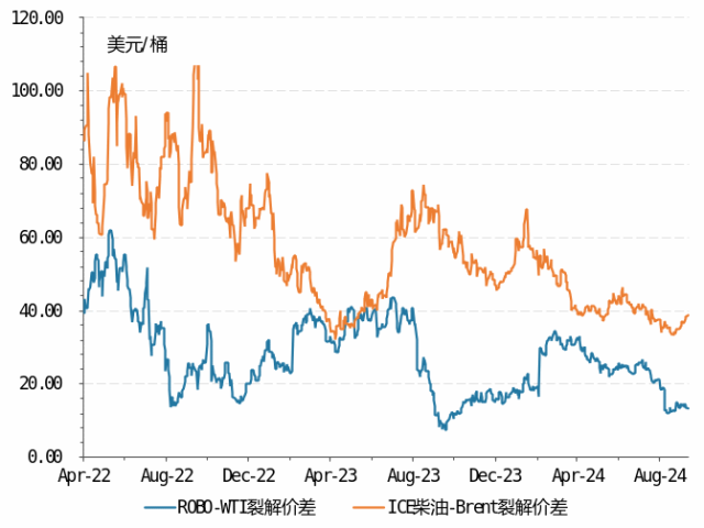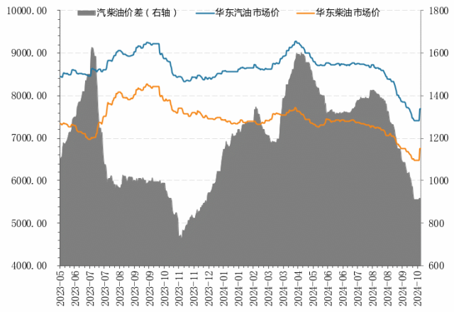 6.成品油方面,汽柴油的消费依旧受到新能源汽车推广的冲击,但随着国内中央政治局会议定调“止跌回稳”后,政府已经陆续出台了宽松的货币政策,目前市场仍存有对未来宽松财政政策的出台抱有期望,柴油的基本面因此明显好于汽油,预计汽柴油价差缩窄的趋势仍将延续。