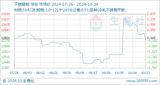 10月24日生意社不锈钢板基准价为12778.57元/吨