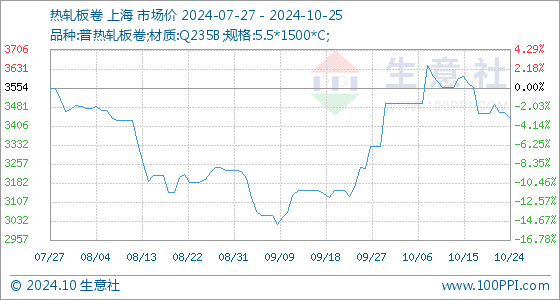 10月25日生意社热轧板卷基准价为3438.00元/吨