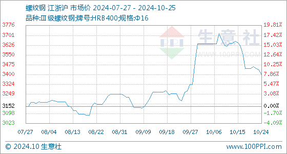 10月25日生意社螺纹钢基准价为3398.57元/吨