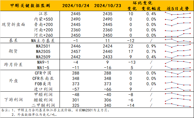 逻辑:盘面延续减仓式反弹,基差表现依旧偏弱,维持01-10左右;1-5月差在浅负值波动。维持观点,价格结构率先转弱,体现市场预期偏差。基本面来看,内地将受制于高供应,常出现降价排库;关注本月港口库存能否缓解。盘面来看,单边走势和月差转负或令今年远近月资金提前分流,空头或滞留近月或止盈,但多头将优选远月,预计MA2501今年很难再成为强合约。观点上,短期等待新驱动;关注MA1-5反套,中期等待负值。