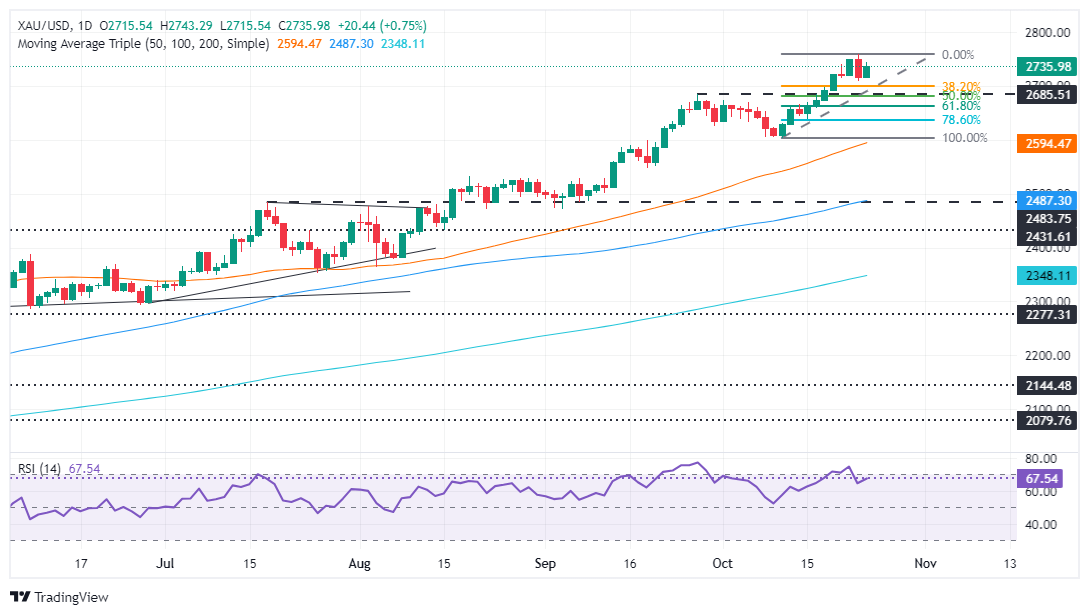 另一方面,Valencia补充道,如果金价跌破10月23日低点2708美元/盎司,下一个支撑位将是38%斐波那契回撤位2699美元/盎司,随后分别是50%斐波那契回撤位和61.8%斐波那契回撤位(分别在2681美元/盎司和2662美元/盎司)。