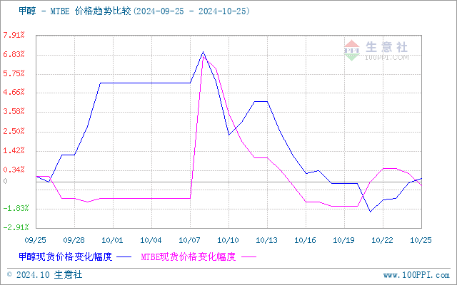 生意社甲醇-MTBE(下游产品)价格走势比较图: