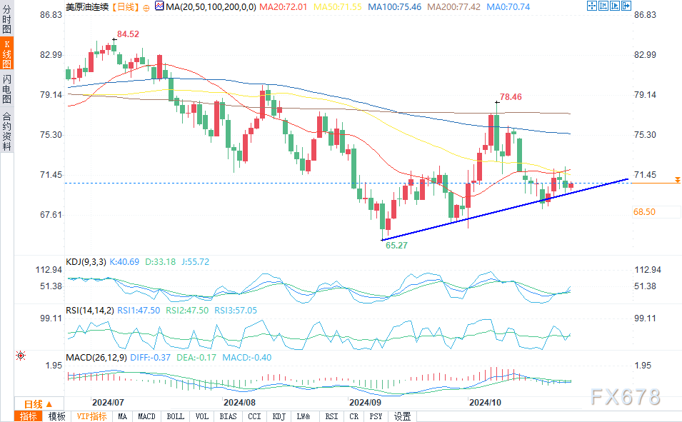 周五(10月25日),WTI原油期货价格小幅上涨。这一上涨正值中东地缘政治紧张局势加剧之际,与冲突有关的事态发展继续影响市场情绪,使价格保持在窄幅区间波动。