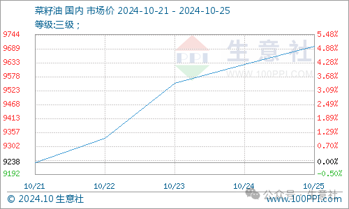 受国际棕榈油价格上涨提振,本周国内棕榈油价格持续上涨,并带动豆油、菜油走强。且四季度是油脂消费旺季,近日菜油提货状况相对良好,现货价格连续回升。不过,短期而言,国内菜籽供应依旧充裕,菜油库存维持相对高位,预计行情震荡为主。