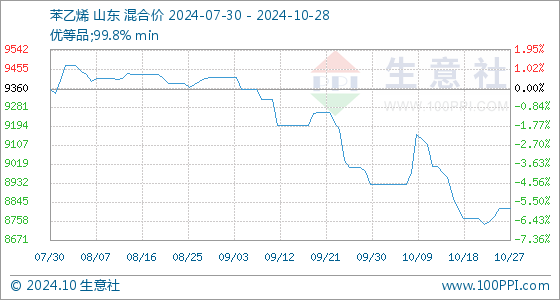 10月28日生意社苯乙烯基准价为8814.00元/吨