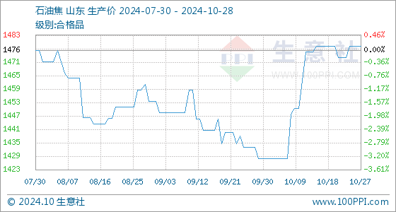 10月28日生意社石油焦基准价为1478.50元/吨