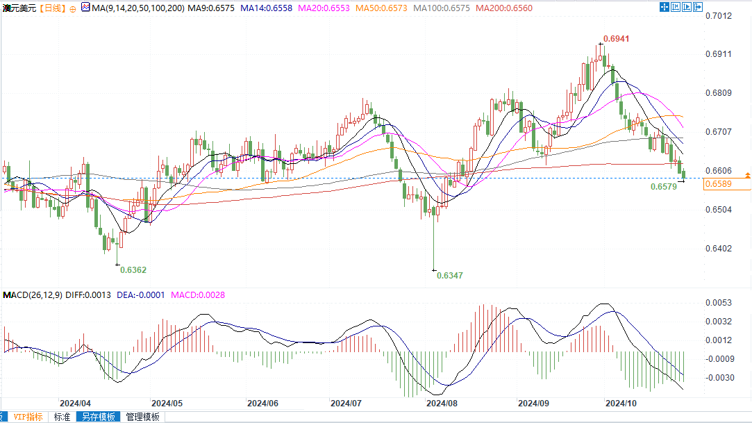 北京时间10月28日14:03,澳元兑美元报0.6591/92