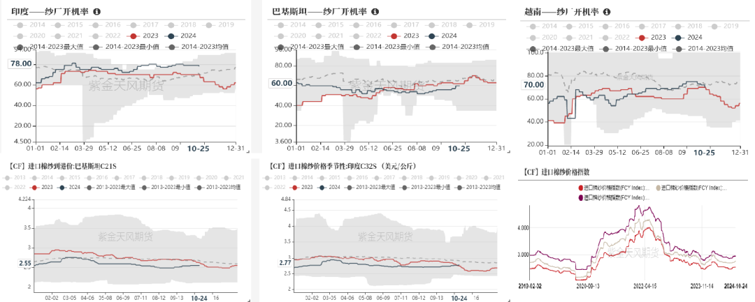 进口棉纱:中性粗支纱进口占比较多,巴纱开机良好。