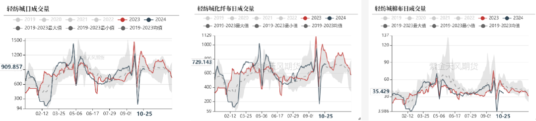 轻纺城成交稳中小落,处于过去五年均值上下,棉布端偏弱。