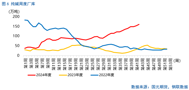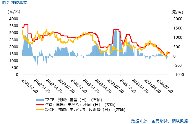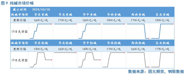 纯碱2501合约周五日内收于1450,截至10月17日,当周跌幅超过3%;华北纯碱基差在250元/吨;华东纯碱基差在150元/吨,环比略有走扩。