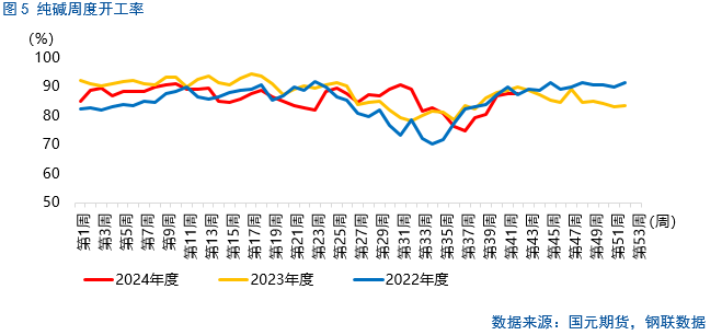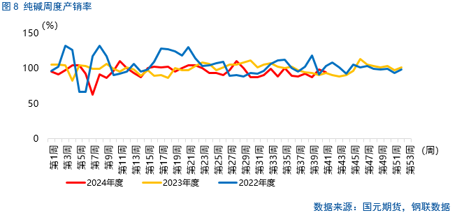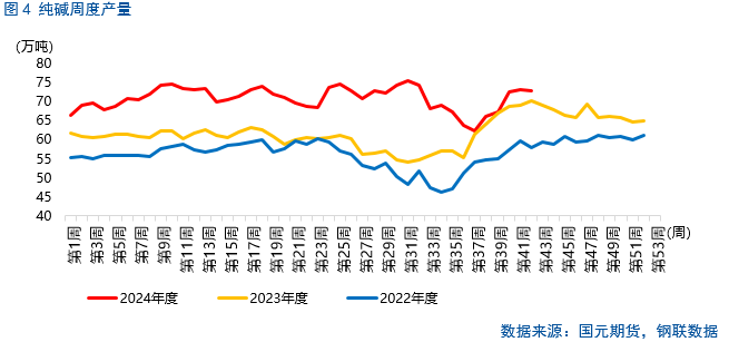 供应:在短期产业链利好之下,本周纯碱产量略有上升,后市来看,江苏有设备计划检修,短期内整体产能利用率变动不大,或将窄幅下滑。截至2024年10月10日,本周纯碱综合产能利用率87.84%,上周87.06%,环比增加0.78个百分点;纯碱产量73.23万吨,环比增加0.65万吨,涨幅0.90%。轻质碱产量30.32万吨,环比增加0.41万吨。重质碱产量42.91万吨,环比增加0.24万吨。