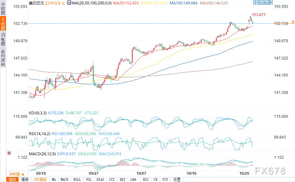 (美元/日元4小时图来源:易汇通)