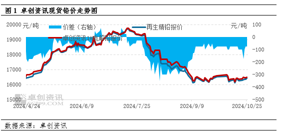 10月铅价维持区间震荡调整态势,重心小降。期货端来看,10月沪铅主力在16450-17100元/吨区间横盘震荡。现货端来看,根据卓创资讯统计数据显示,截至10月25日,卓创资讯现货1#电解铅报价16450-16550元/吨,均价16500元/吨,本月现货现价波动范围有限,最高价格出现在10月8日,价格为16650元/吨,最低价格出现在10月15日,价格为16200元/吨,高低价差450元/吨。本月铅价震荡的主要原因在于铅市供需博弈,市场进入胶着状态,缺乏明显性方向。