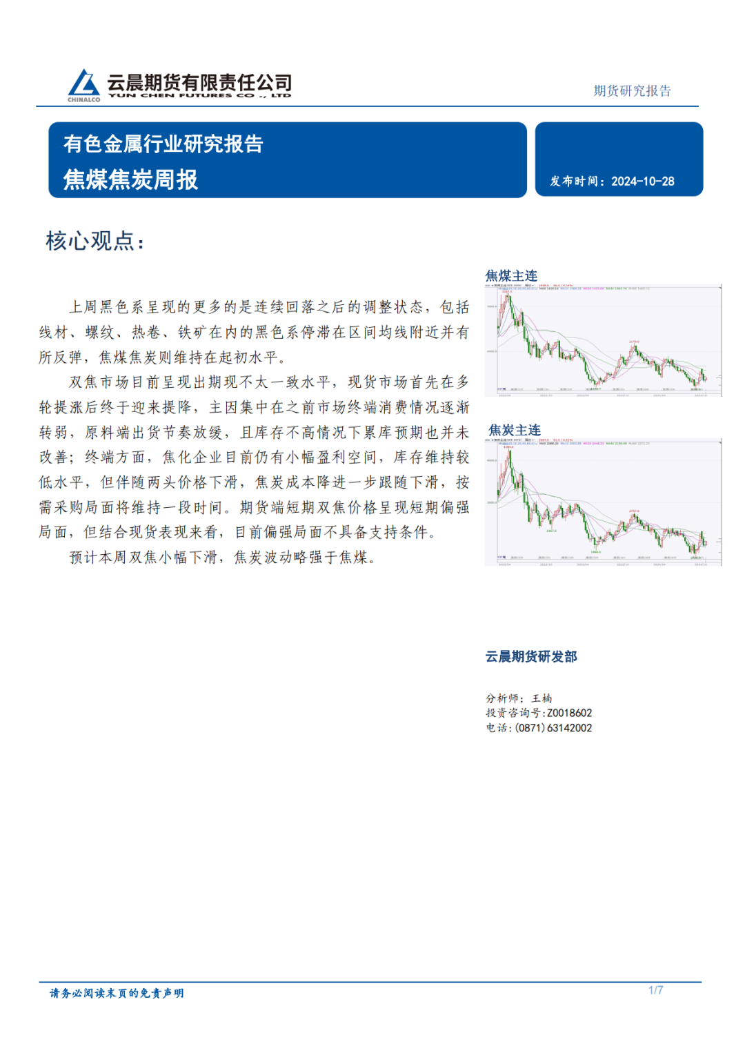 预计本周双焦小幅下滑,焦炭波动略强于焦煤。