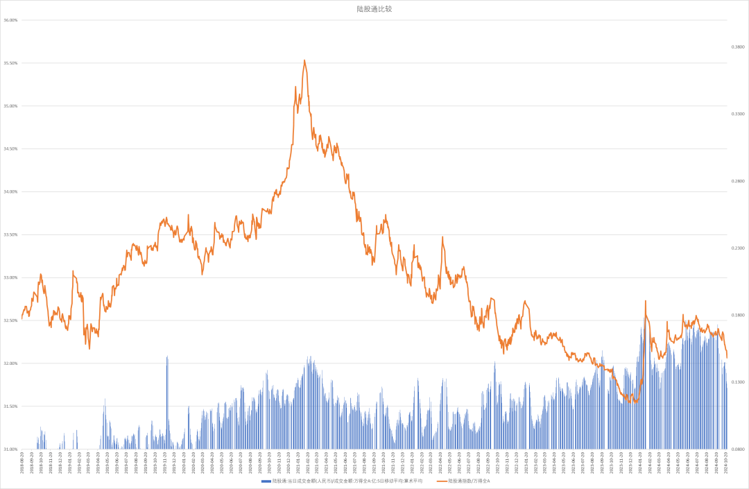 陆股通指数成交占比下行,比价也明显下行,跑输沪深300指数。北上资金并非本轮行情的主力。