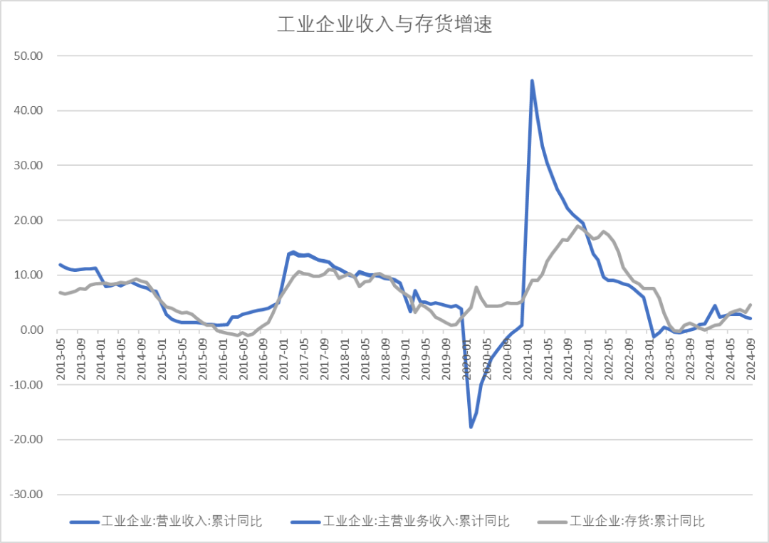 经济数据与政策:偏空 1-9月工业企业利润数据较差,当月同比下降27.1%,累计下降3.5%,当月增速接近历史低位。从库存周期来看,营收增速下降到2.1%,存货增速上升到4.6%,呈现被动加库存的周期下行状态,但高新技术行业相对有韧性。政府高官继续表示要实现预期增长目标,如果中国要实现年5%的增长目标,4季度的GDP增速预计要达到5.2%左右,显著高于三季度的4.6%。