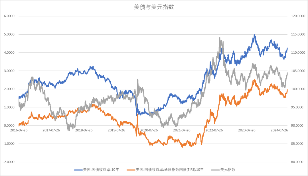 强劲的经济数据和美国大选不确定性,推高了美债收益率反弹到4.25%,实际利率回升到2%,美元指数回升。但是美股慢牛仍在继续,英伟达创出新高。