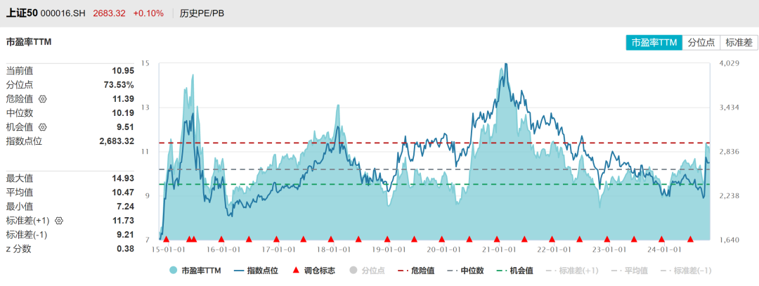 上证50PE十年以来分位点73%,PB分位点37%,处于历史中位。