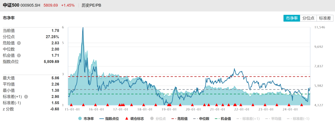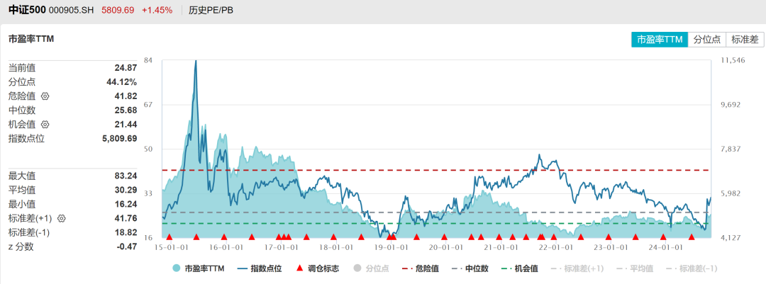 中证500PE注册制改革以来PE分位点44%,PB分位数27%,处于中低位。