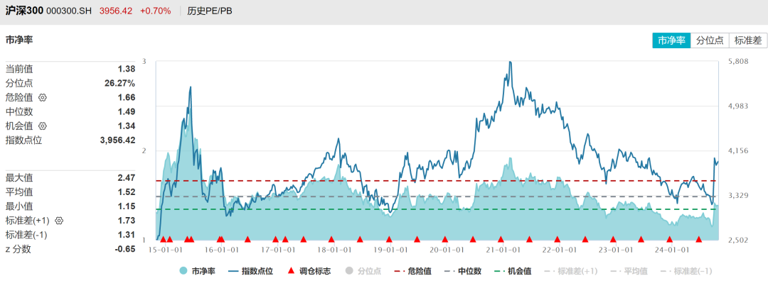 沪深300PE十年分位点57%,PB分位点27%,处于中低位。