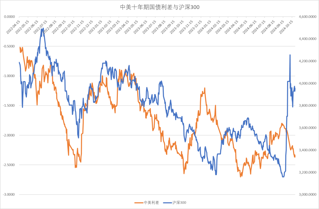 大类资产:偏空 强劲的经济数据和美国大选不确定性,推高了美债收益率反弹到4.25%,实际利率回升到2%,美元指数回升,中美利差扩大。但是美股慢牛仍在继续,英伟达创出新高。