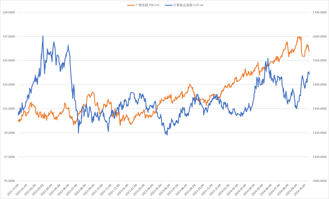 上周十年期国债期货价格震荡,商品指数冲高回落。