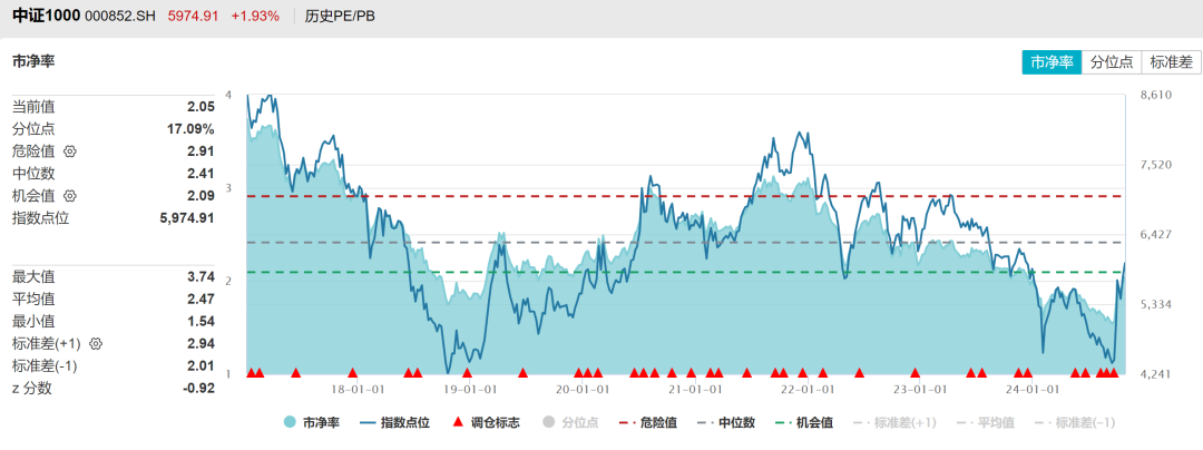 中证1000PE注册制改革以来分位点61%,PB分位数17%,估值中低位。