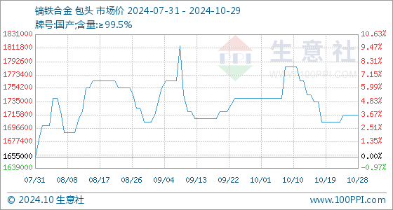 10月29日生意社镝铁合金基准价为1715000.00元/吨