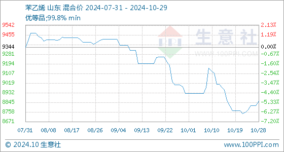 10月29日生意社苯乙烯基准价为8856.00元/吨
