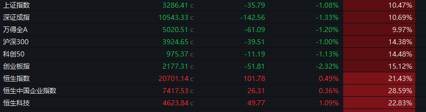 今日,A股主要股指集体回调,沪指、深证成指跌幅均超过1%,但全市场成交额重返2万亿元上方。同时,港股表现相对强势,恒生指数收涨0.49%,恒生科技指数收涨1.09%。