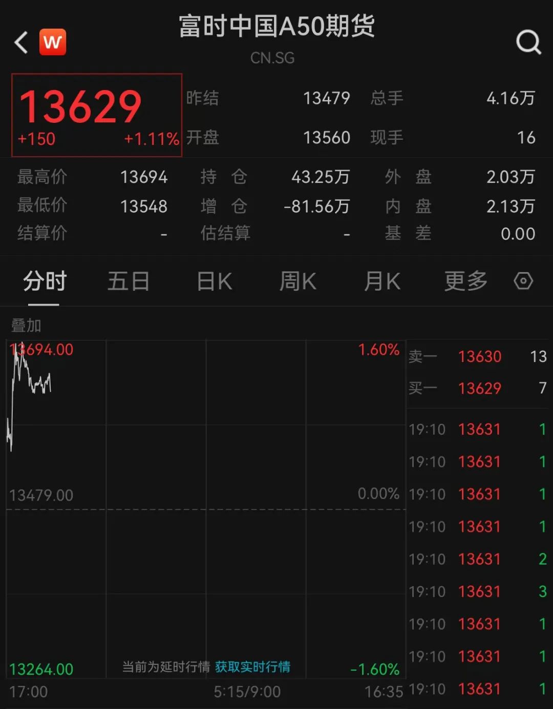 29日傍晚,外围市场出现大变数,富时中国A50期货指数直线拉升,一度涨超1.5%。