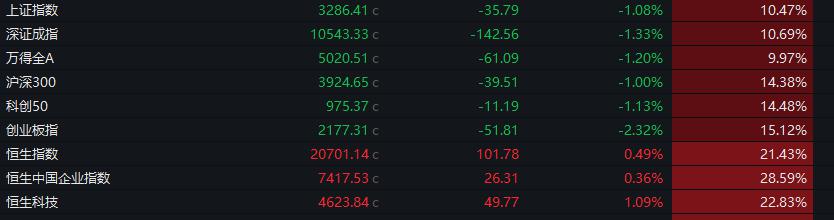 今日,A股主要股指集体回调,沪指、深证成指跌幅均超过1%,但全市场成交额重返2万亿元上方。同时,港股表现相对强势,恒生指数收涨0.49%,恒生科技指数收涨1.09%。