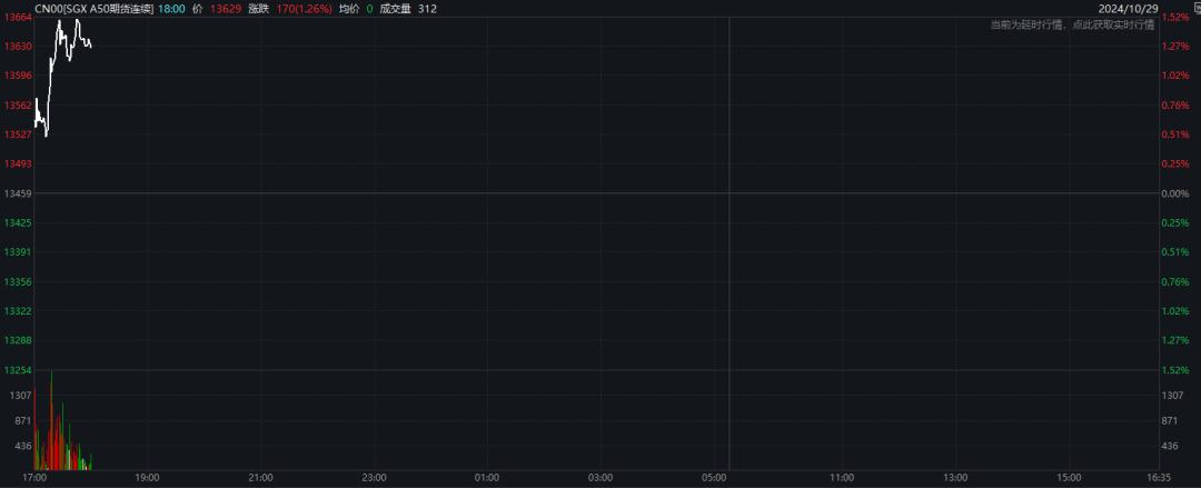 10月29日,富时中国A50指数期货夜盘开盘拉升,一度涨超1.5%。在当天白天的交易中,该指数期货收跌0.48%。