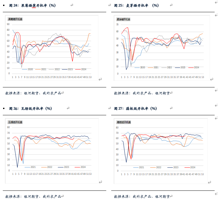 2024年10月玉米现货持续回落,开机率仍处于高位,副产品价格处于低位,淀粉价格回落较小,淀粉企业利润较高。目前东北玉米回落较多,华北玉米与东北玉米价差继续扩大,副产品价格仍较低,淀粉企业副产品的贡献也达到19年来新低,其中山东深加工副产品的贡献在530元/吨。10月华北玉米企稳反弹,市场预期山东玉米底价基本在2050元/吨附近,山东淀粉底价基本在2700元/吨附近。目前山东玉米与黑龙江玉米价差较高,黑龙江淀粉开始有定价权,预计01合约的仓单较多会在黑龙江。01淀粉处于春节期间,预计会贴水交割。对于华北淀粉目前利润较高,预计12月中下旬,企业会出现亏损。但11月仍有旺季预期,预计01淀粉波动会较小。
