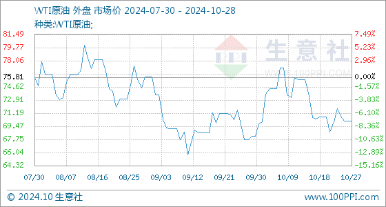 10月28日生意社WTI原油基准价为70.19美元/桶