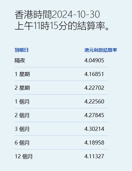 港元拆息普遍向上隔夜息重上4%为18日以来新高