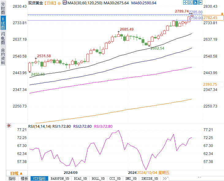 汇通财经APP讯——周三(10月30日)的市场表现延续了近期强劲的上涨势头,金价在早盘交易中触及2789.83美元/盎司,刷新历史新高,并大幅上涨逾15美元。随着中东地区持续的冲突和地缘政治风险的加剧,黄金再次成为投资者的避险选择。