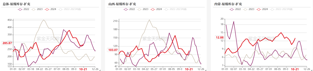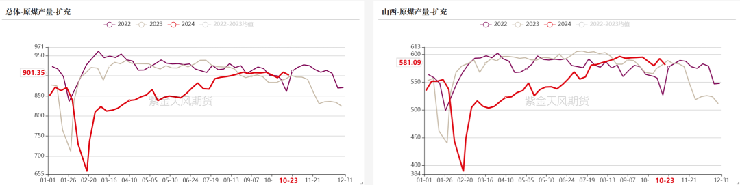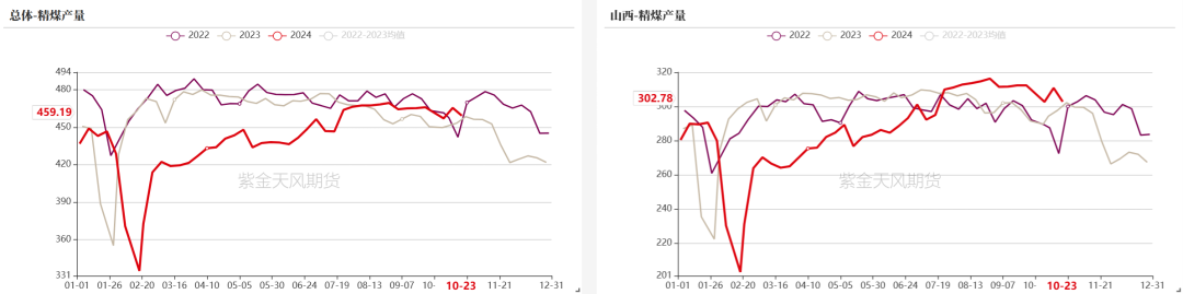 上周焦原煤周产量901.35万吨,周环比-7.77万吨;精煤周产量459.19万吨,周环比-6.28万吨,产量高位,多数矿稳定生产。