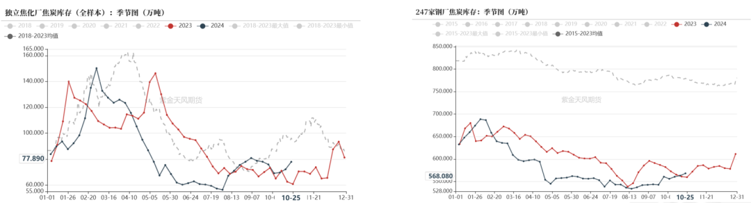 库存:中性偏空焦炭首轮降价后,焦化及中间环节暂缓采购,煤矿签单不佳,矿端开始累库。